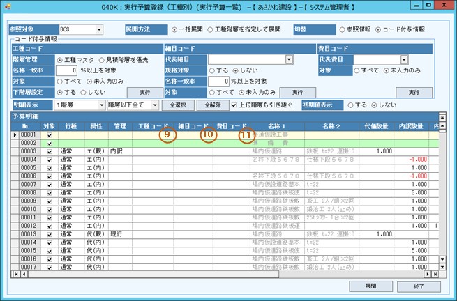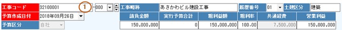 参照したい実行予算情報が登録されている工事コードを入力します。