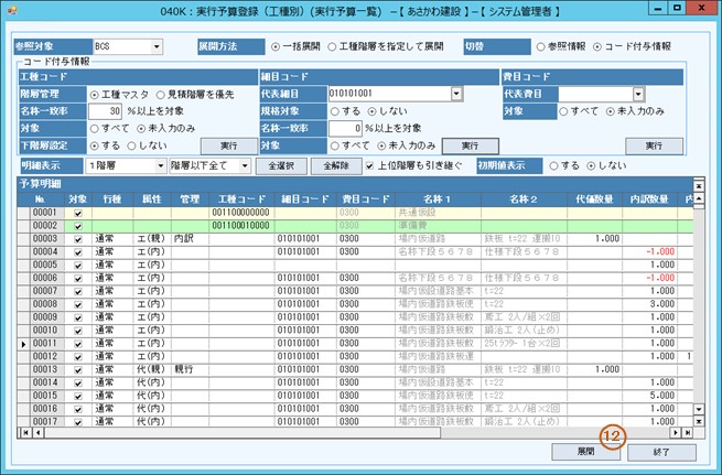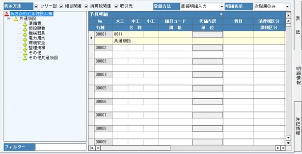 親行:展開時、明細情報に展開し、内訳を代価内訳に展開します。