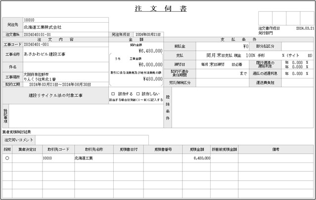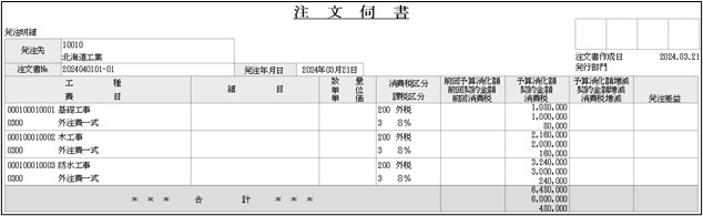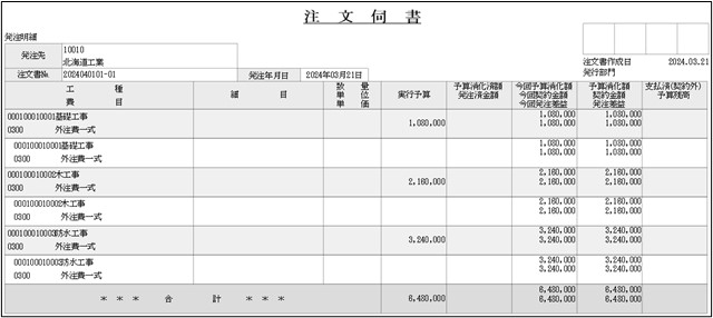 注文伺書:発注契約登録の内容のみを出力する場合に選択します。