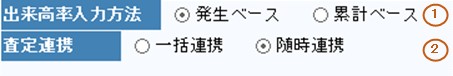 〔出来高査定入力〕の査定結果を、今回査定分の単月出来高率で入力する場合は、「発生ベース」を選択します。