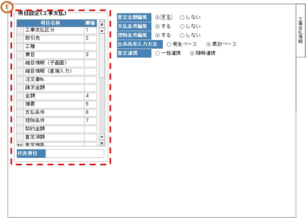 費目の順番を設定しておらず、代表費目を設定した場合、〔工事請求査定入力〕の査定結果の