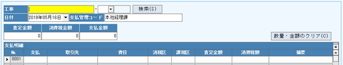 工事支払区分、取引先、金額、支払条件、控除条件は、必須項目です。