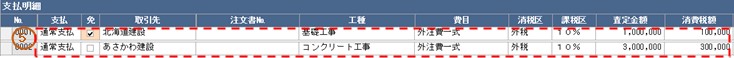 契約済みの請求査定の場合、注文書№を入力し、子画面に展開された発注支払状況明細の該当行を
