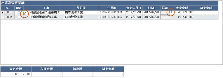 検索条件に該当する査定結果が出来高査定明細に表示されます。