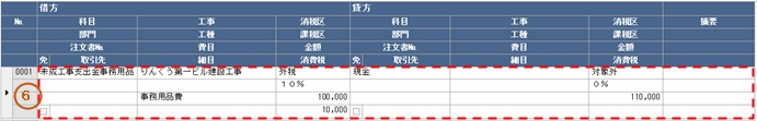 現場で発生した経費は領収書の内容を基に〔振替伝票入力〕にて会計仕訳ベースで入力します。