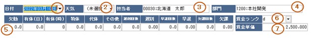 1.出勤日を入力します。必須項目です。