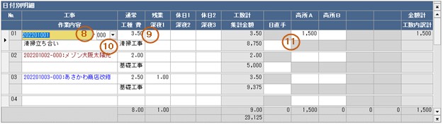 下段は、工数項目で日数又は時間数を入力します。