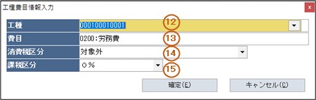 工種コードに関連する費目コード、消費税区分、課税区分が自動展開されます。