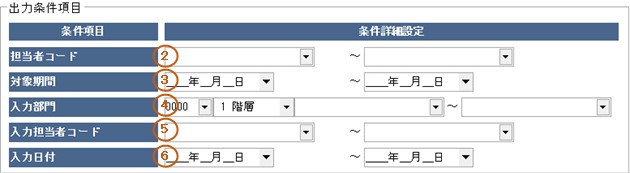 〔工事出面入力〕又は〔月別工事出面入力〕を登録した入力担当者の社員コードを指定します。