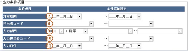 〔工事出面入力〕又は〔月別工事出面入力〕を登録した入力担当部門の部門コードを指定します。