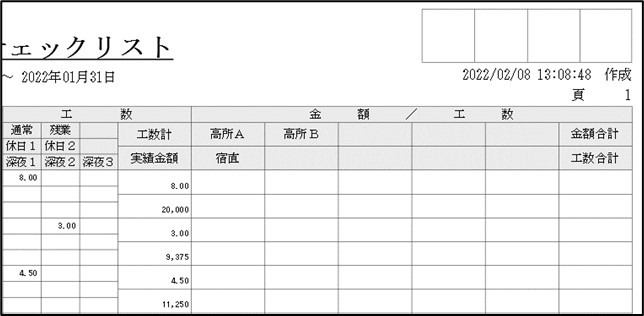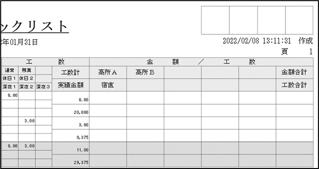 ※「~(全手当)」の帳票種別の場合、工数項目6~20が出力されます。