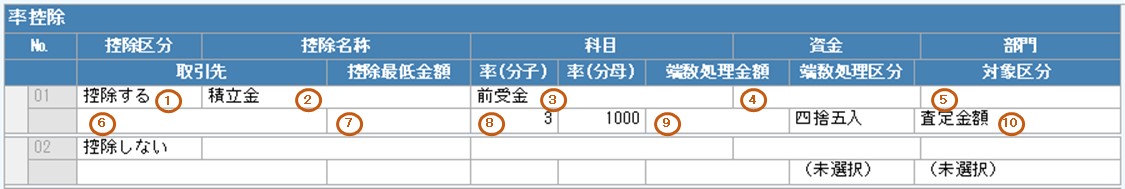10.率控除を計算する対象金額を選択します。必須項目です。
