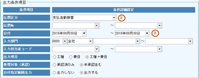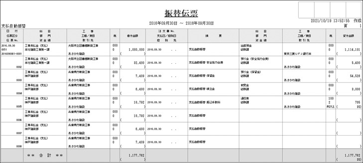 詳細コード表示版のレイアウトで、伝票日付順に出力します。