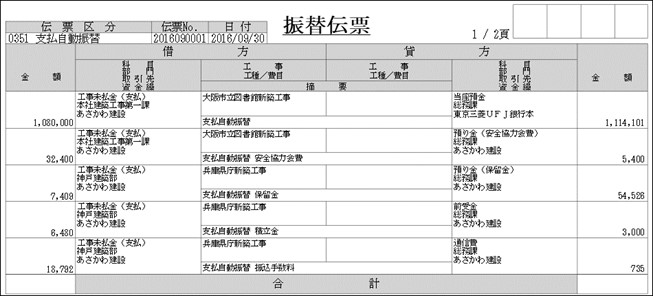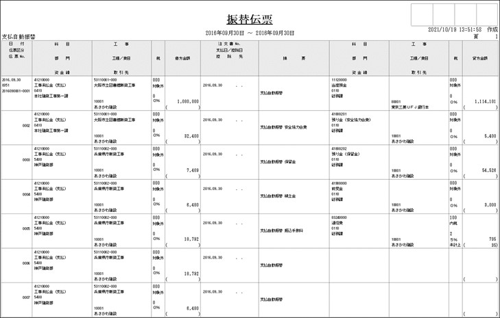 〔財務情報システム〕の〔振替伝票〕で〔支払自動振替〕の結果を確認します。