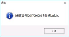 自動採番した伝票№で保存しようとした場合、他の担当者に同じ伝票№で先に保存されたとき、保存前に伝票№が再採番され、別の伝票№で保存されますので、本通知メッセージは、必ず確認してください。