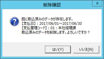 ※一度取込を実行したことのある期間で再実行する場合、確認メッセージが表示されます。
