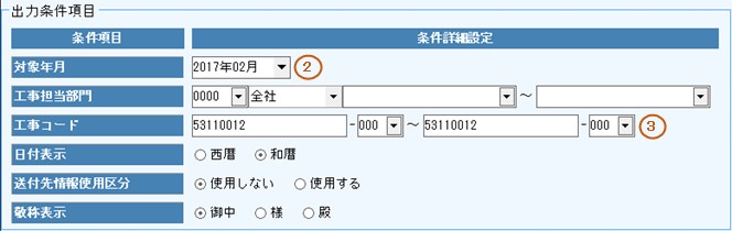 3.工事コードを範囲入力します。
