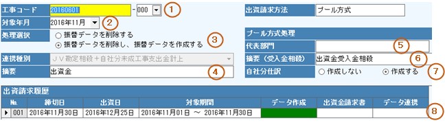 出資金請求書:JV出資金請求書の印刷が完了した時点で緑色になります。