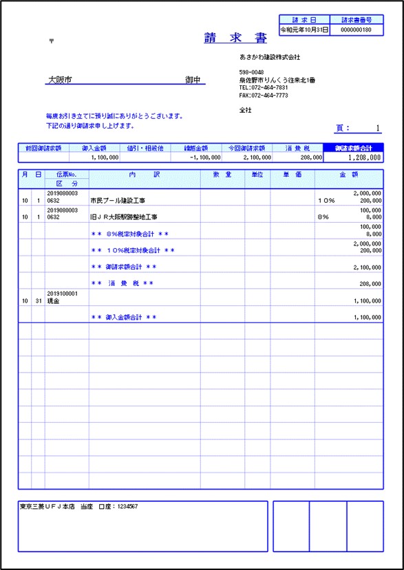 出力する請求書です。