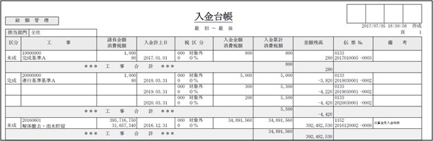 システムメニューより〔原価情報〕の原価情報グループの〔入金台帳〕を起動します。