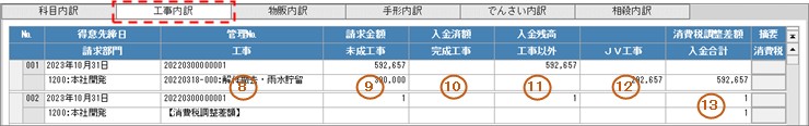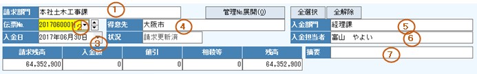 得意先(発注元)からの入金情報を入力し、工事毎の入金消し込みを行います。