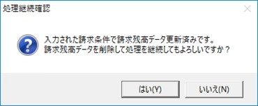 [はい]を選択した場合、入力した請求条件の請求残高データが削除されます。