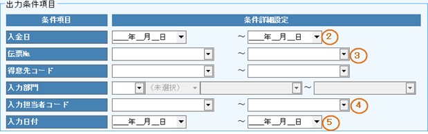 入金日順:入金日順伝票№順に出力します。入金日の条件が利用できます。