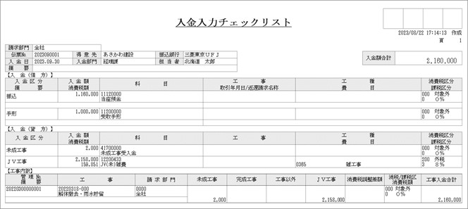 帳票種別で「伝票№順」「入金日順」を選択した場合