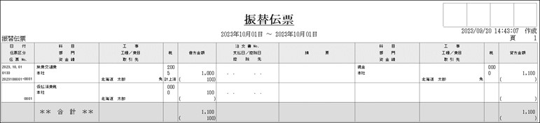日付順(詳細):詳細版のレイアウトで、伝票日付順に出力します。