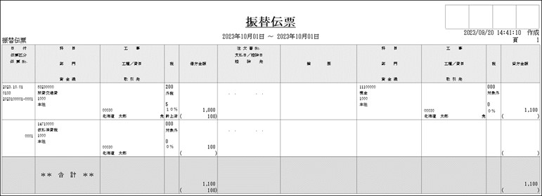 日付順(詳細)(コード表示):詳細コード表示版のレイアウトで、伝票日付順に出力します。