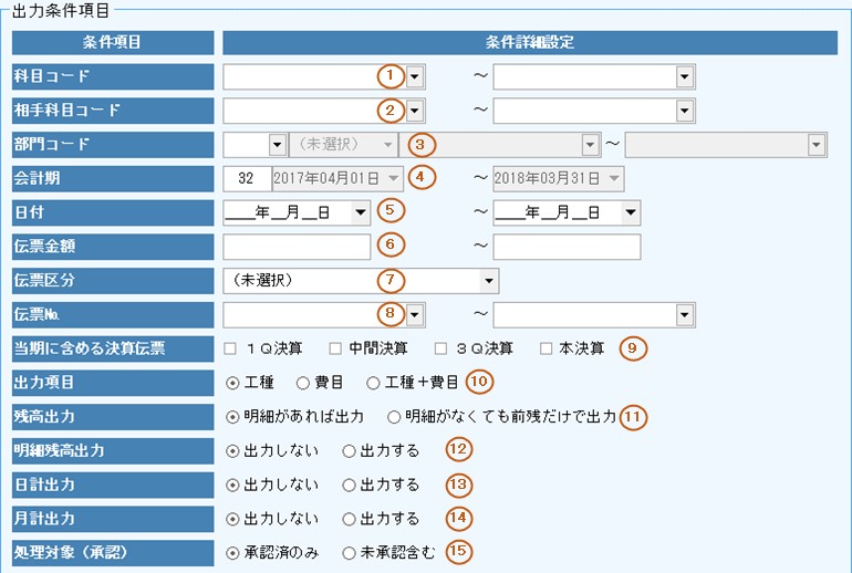 「明細があれば出力」:期間発生明細のある科目のみ出力します。