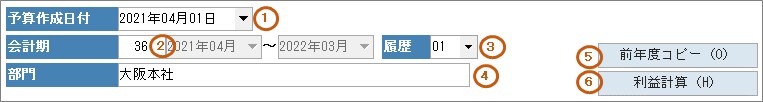 会計期間の部門コード毎に損益計算書の形式で予算金額を入力します。