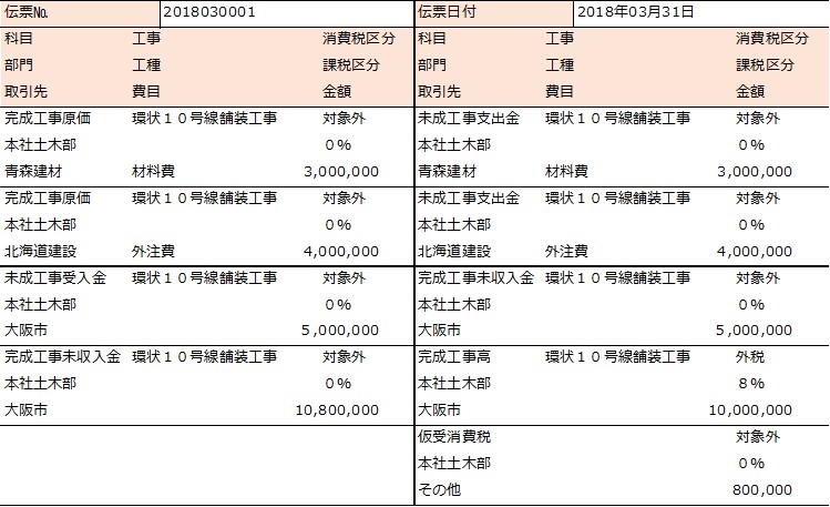 完成工事高の消費税(仮受消費税)は、完成工事高とセット(一対一)で計上されます。