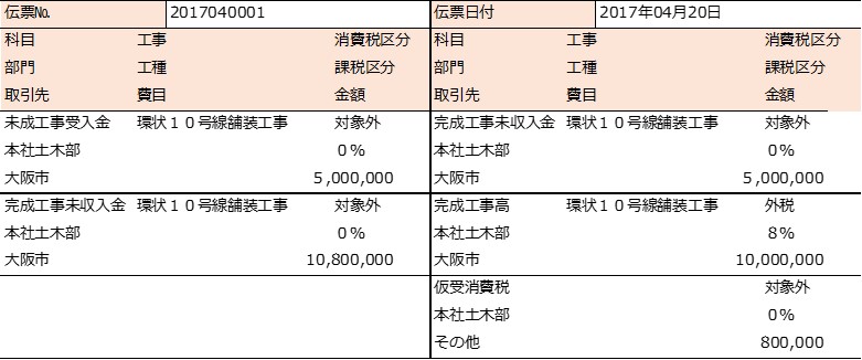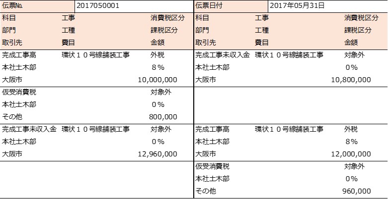 完成工事高「請負金額の増減に応じて計上」を利用した場合の仕訳例