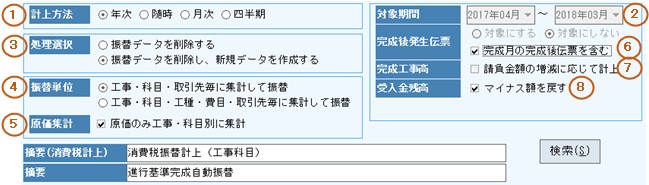 完成工事高、完成工事原価の振替単位が制御されます。