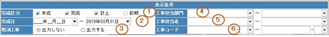 ※工事コードをひとつだけ指定して出力する場合は①②③④⑤条件入力は不要です。