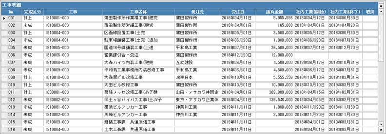 検索条件に該当する受注工事情報が工事明細に表示されます。