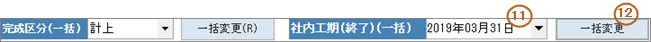 画面上の表示された工事明細の社内工期(終了)を一括変更する場合、変更する日付を入力します。