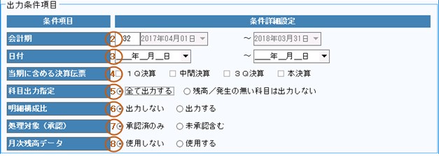 期間発生:日付条件で指定した期間を基準に、「期間前残高」「期間発生」「期間残高」を出力します。