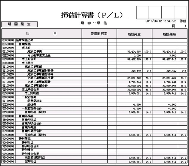 [累計残高]又は[期間発生]の損益計算書を作成します。