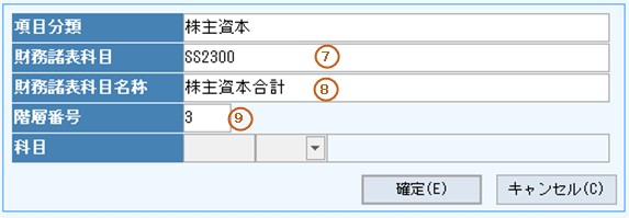 10.見出し、科目合計以外の場合、財務諸表科目に該当する科目コードを入力します。