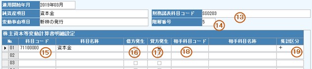 6.株主資本変動計算書に出力する科目合計の列を登録します。