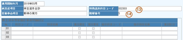 13.e-Taxで指定されている勘定科目コードを入力します。 必須項目です。