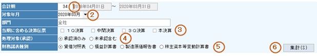 個別注記表以外の財務諸表は、科目情報の登録後、提出する会計期間の金額集計処理を行なう
