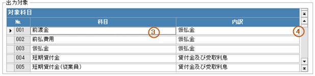 3.指定されている勘定科目内訳明細書に集計する科目コードを入力します。 必須項目です。