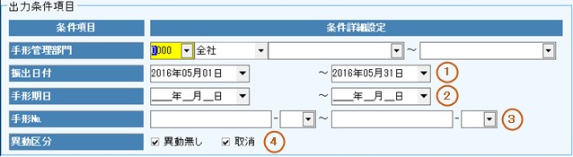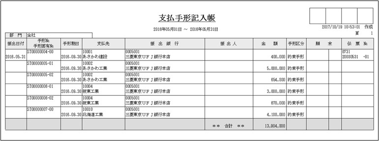 出力対象の支払手形明細は振出日順に時系列に表示されます。