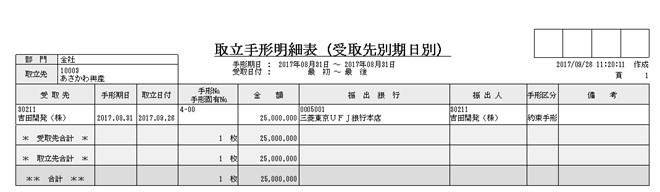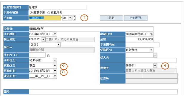 1.手形の種類、手形№を入力して登録済の手形情報を呼び出します。