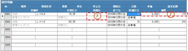 再開日:損料計算の対象とする期間の開始日付を入力します。