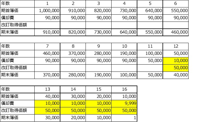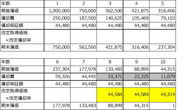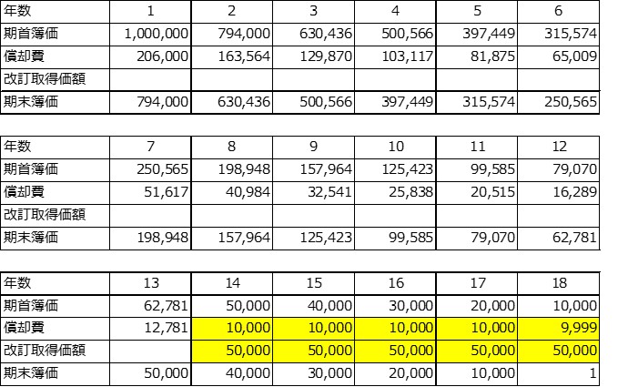 改定取得価額 = 定額償却に移行した際の期首簿価