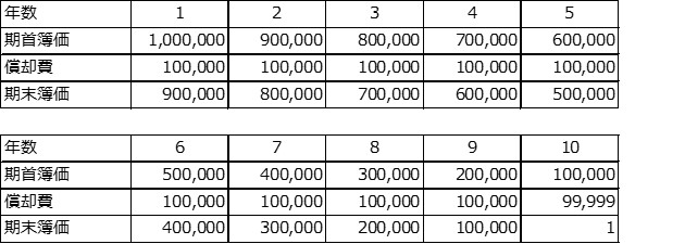 2006年04月01日に取得、取得価額1,000,000円、耐用年数10年(旧定額法の償却率 0.100)